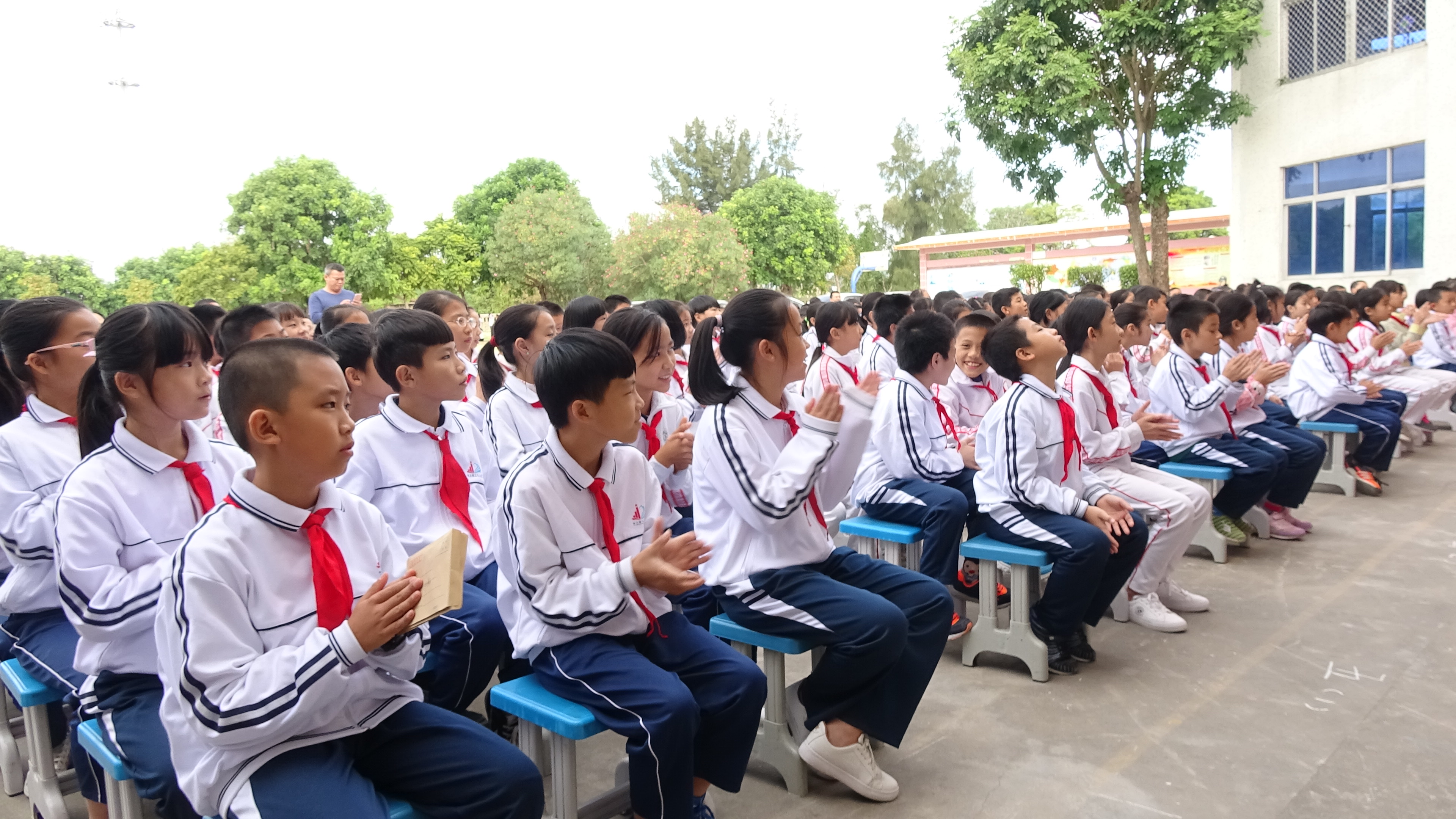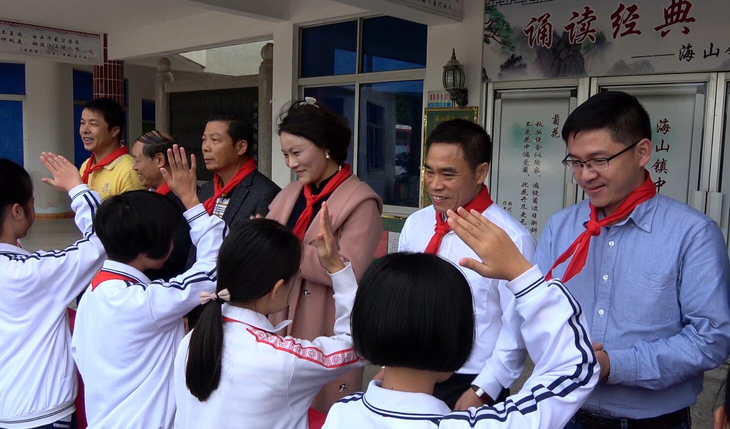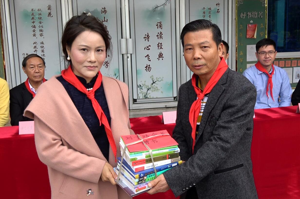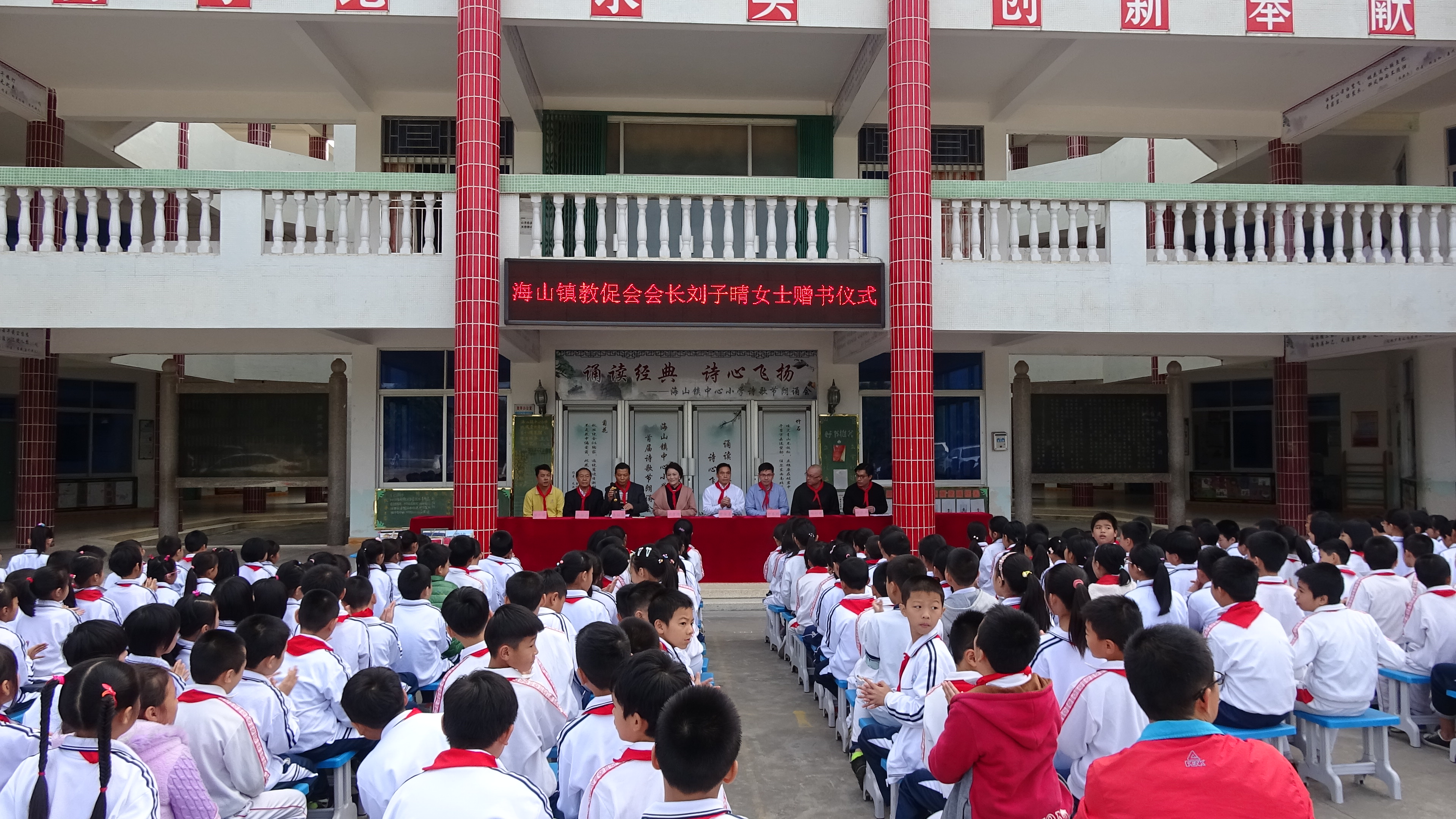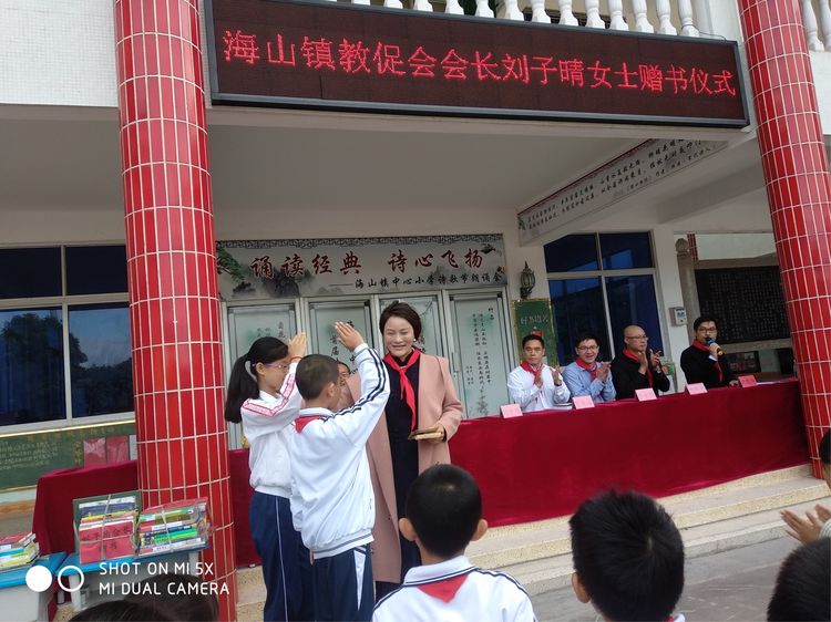 活动中,海山镇教育促进会会长刘子晴为海山镇中心小学赠送了图书8000余册,并向孩子们深情讲述她过去在家乡小学读书的故事。