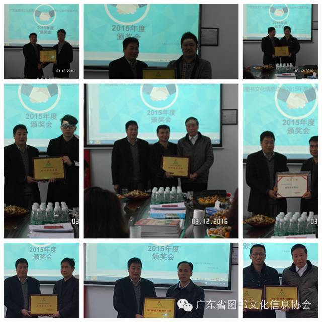 二,广东省图书文化信息协会2015年度颁奖大会。协会就2015年度给以下单位授予表彰。
